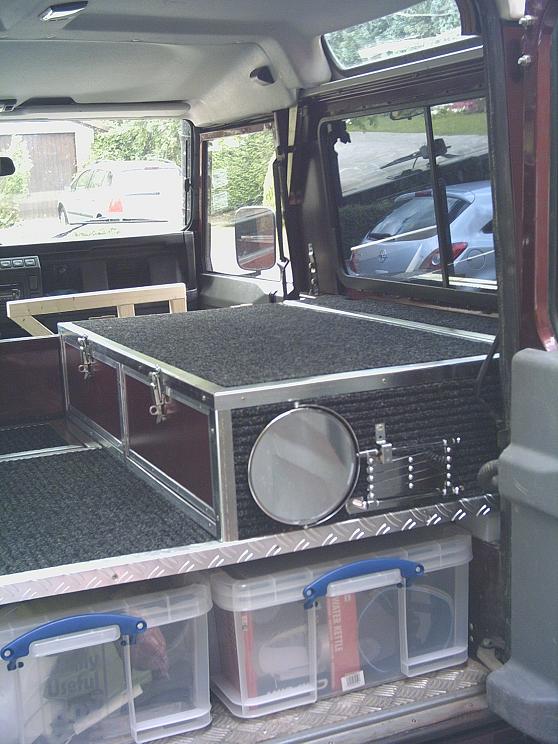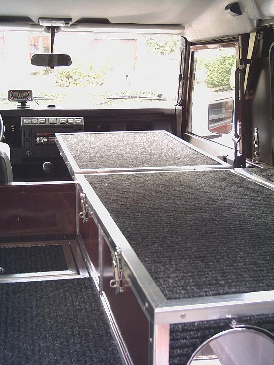 Salut. Je viens de terminer l'aménagement de mon Def afin de pouvoir dormir dedans (pas beaucoup de place dans un 90) . Je pars demain en vacances, l'occasion de tester. Voici quelques photos.