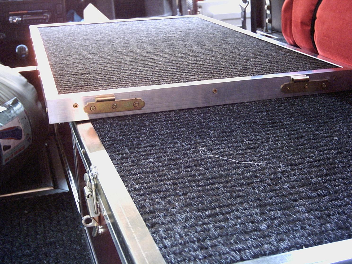 Le fond posé et recouvert de tapis. Deux bacs se glissent en-dessous