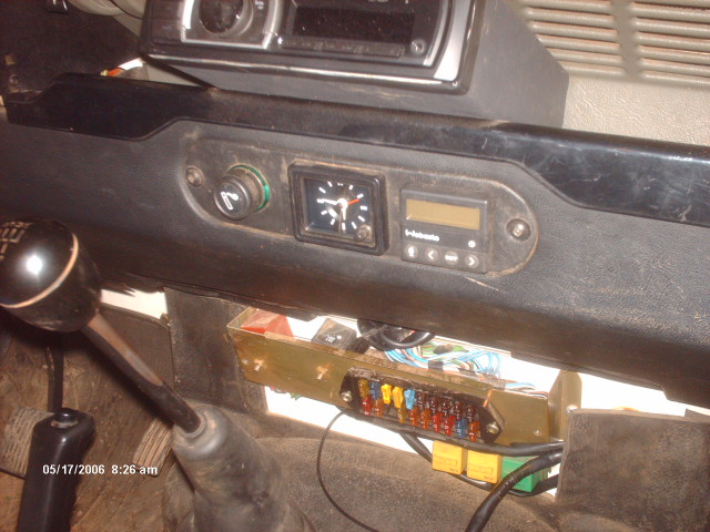 Pour passer le faisceau électrique après avoir démonté pas mal de truc du tableau de bord (je voulais au départ passer par les réservations de passage du circuit électrique de la conduite à gauche ) puis je me suis aperçu qu'il y avait une réservation dans le tablier au niveau de la boite à fusibles (elle est caché derrière l'insonorisant coté moteur) donc le faisceau est passé par là. et j'ai monté le programmateur à coté de la montre voilà pour ce soir si j'ai le temps demain je m'occupe de la ligne d'alimentation de la pompe à gas oil