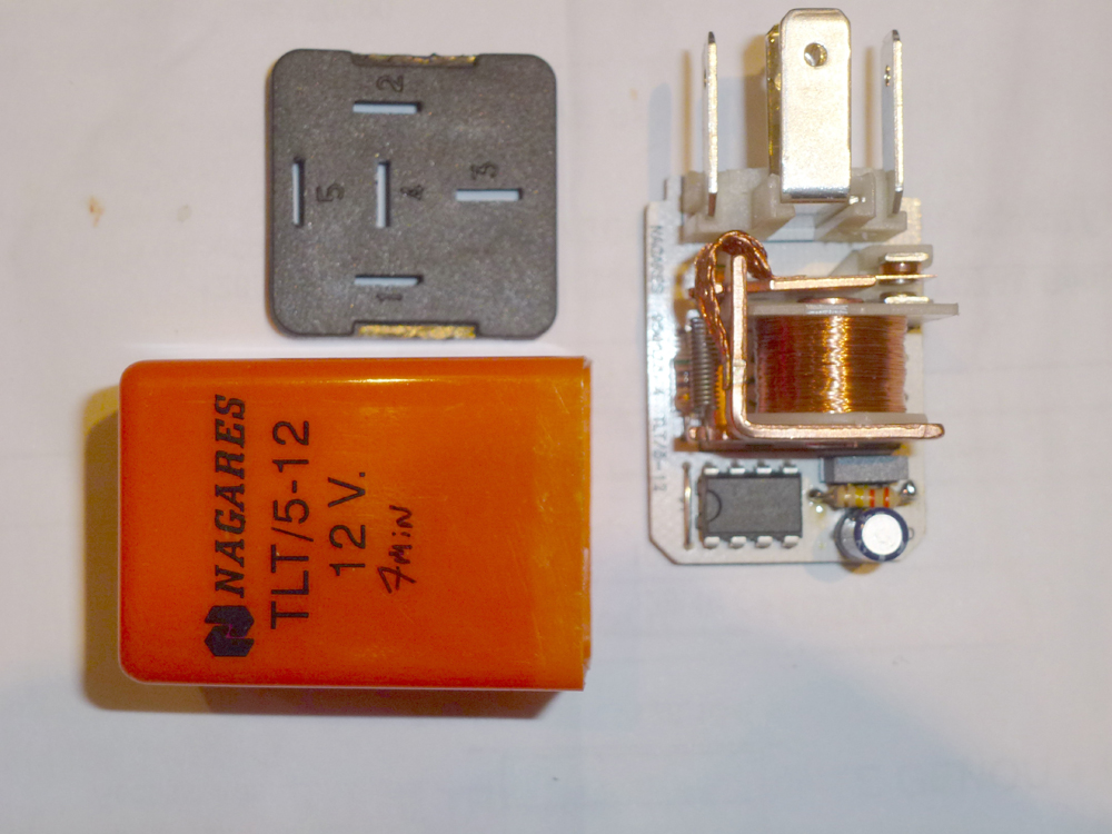 Pour la petite histoire, 10 minutes d'activité pour le PB me semblant un peu trop (par rapport au relais temporisé d'origine PRC6796 , qui est donné pour environ 7 min), je l'ai ouvert et bidouillé un peu.