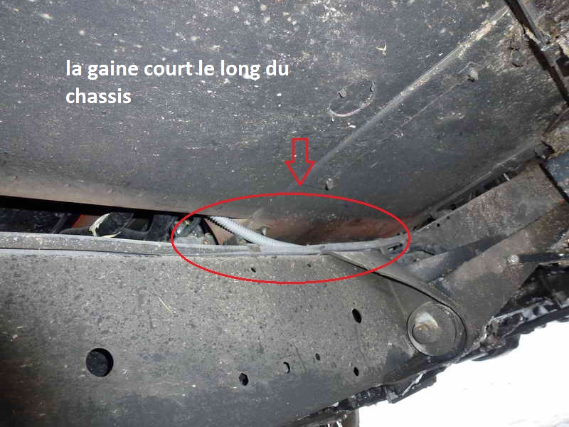 -je passe une gaine (contenant le fil 6mm2) à travers le bouchon en caoutchouc noir à l'arrière du compartiment pour sortir à l'extérieur de ce compartiment,