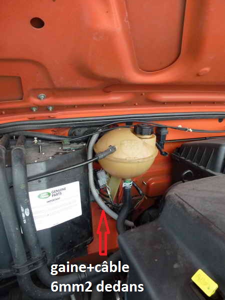 -Je repars avec un autre câble de 6mm2 de la boite à fusible (levier vitesse) ,vers le haut