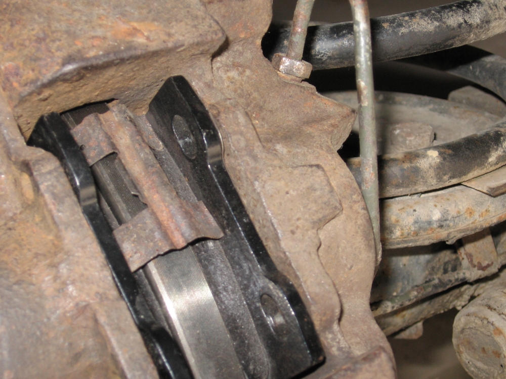 Effectivement, l'architecture générale du système de freinage a l'air différente de ce que j'ai en tête ; il faut que je regarde le montage sur le mien (il me semble notamment que le ressort en tôle coiffe complètement la plaquette, ce qui est impossible vu la forme des tiennes).