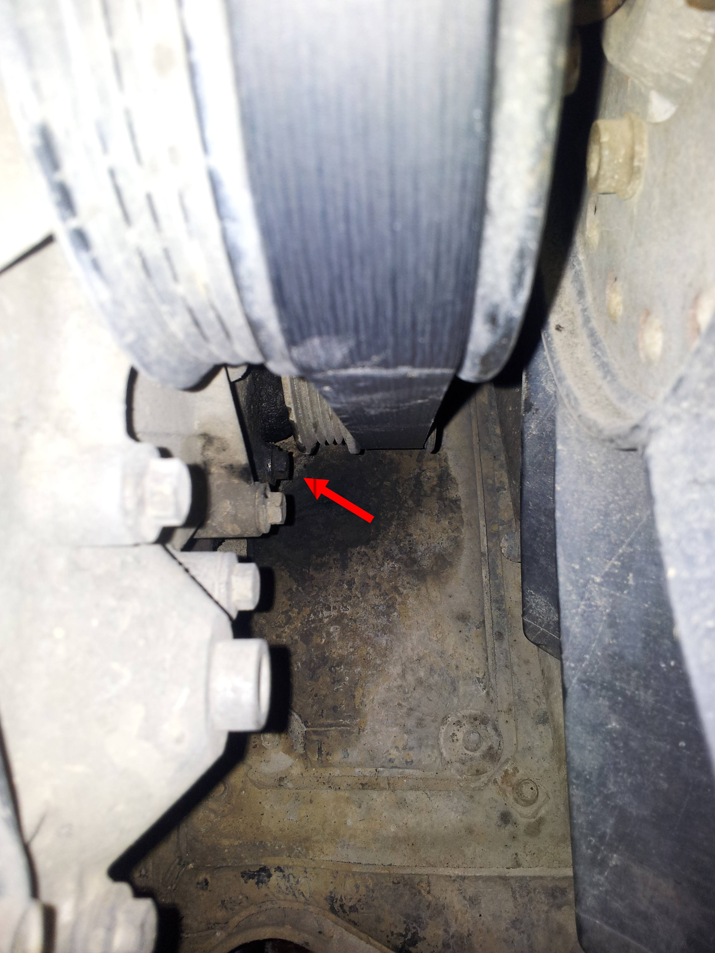 FTN, ce que tu montres est repéré par la lettre A, c'est une vis de fermeture du carter. Le trou permettant la mise a l'air libre du carter de distribution sur un 300Tdi et qu'il faut boucher en cas d'immersion potentiel du moteur.