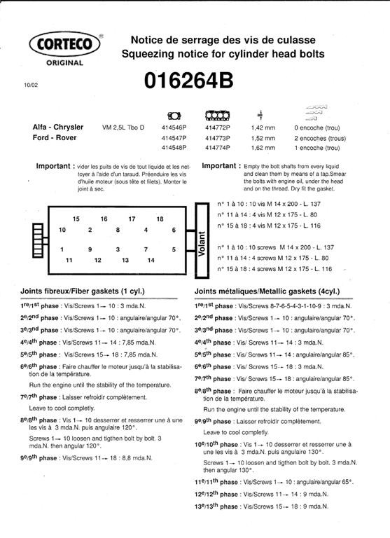La procédure de serrage des culasses VM (joints fibres et joint métal) :