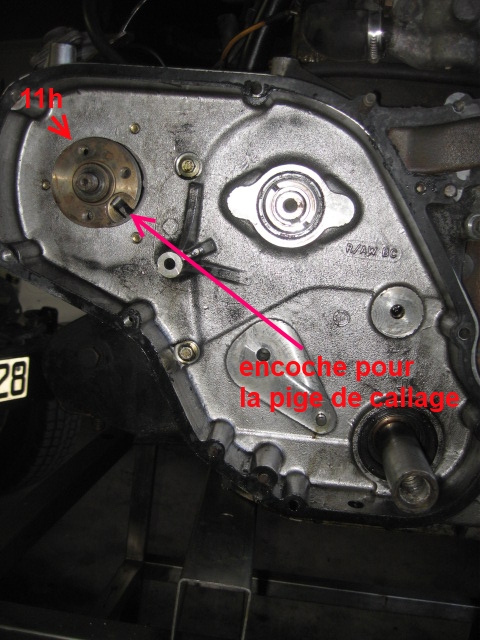 Mais pour être sur du PMH du vilebrequin, il y a aussi l'encoche sur le volant moteur: