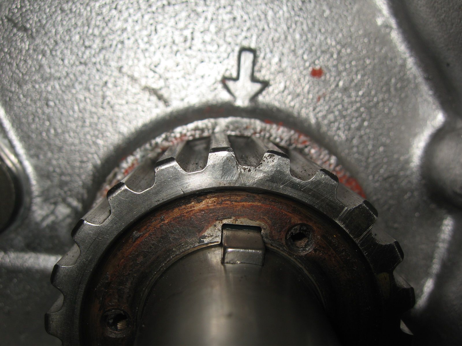 Là il y a une flèche non? Je ne me souviens pas qu'il y ai un repère sur le pignon, vue qu'il est claveté, sur les 300 oui, sur les flasque, il y a une encoche sur certain mais pas sur tous.