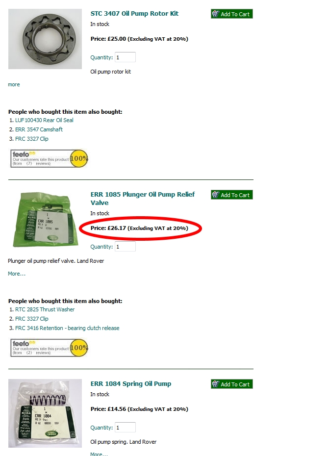 Bon OK, on va commencer par là, avec le clapet de décharge et le ressort, donc commande des pièces chez les grands bretons :Land Rover a écrit :Jeu excessif de palier de vilebrequin.