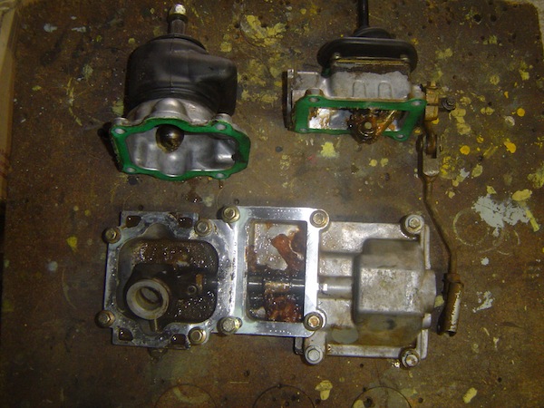 Maintenant qu'on a tout démonté, on peut s'attaquer au nettoyage. On nettoie donc les carters, la plaque intermédiaire, l'arbre d'entrée, l'arbre de sortie et l'arbre secondaire. Pour les éléments qui nécessitent un assemblage, je préfère les nettoyer juste avant le remontage de manière à ne pas se mélanger les pinceaux. Même si tout est repéré, c'est facile de se planter, alors autant mettre toutes les chance du bon côté. Pendant le nettoyage, on fera une inspection détaillée des éléments pour détecter des traces d'usure, de corrosion ou d'autre défaut.