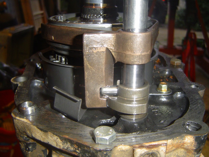 On décale ensuite l'index du coulisseau de manière à pouvoir sortir la fourchette et le synchro de 5°/MA.