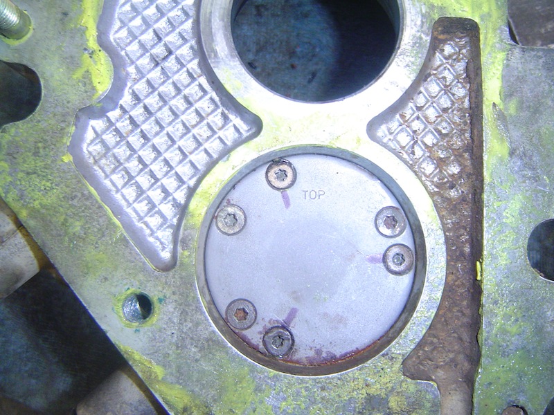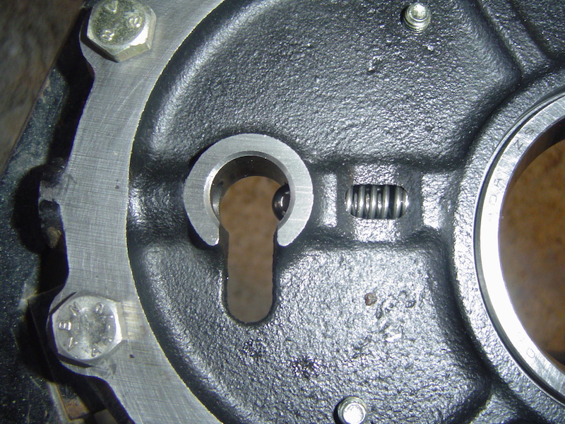 Ensuite on décolle la plaque du carter en s'aidant d'un maillet ou d'un marteau avec des cales de bois. Une fois décollée, on la sort vers le haut. Attention de bien récupérer la bille et le ressort d'indexage du coulisseau.