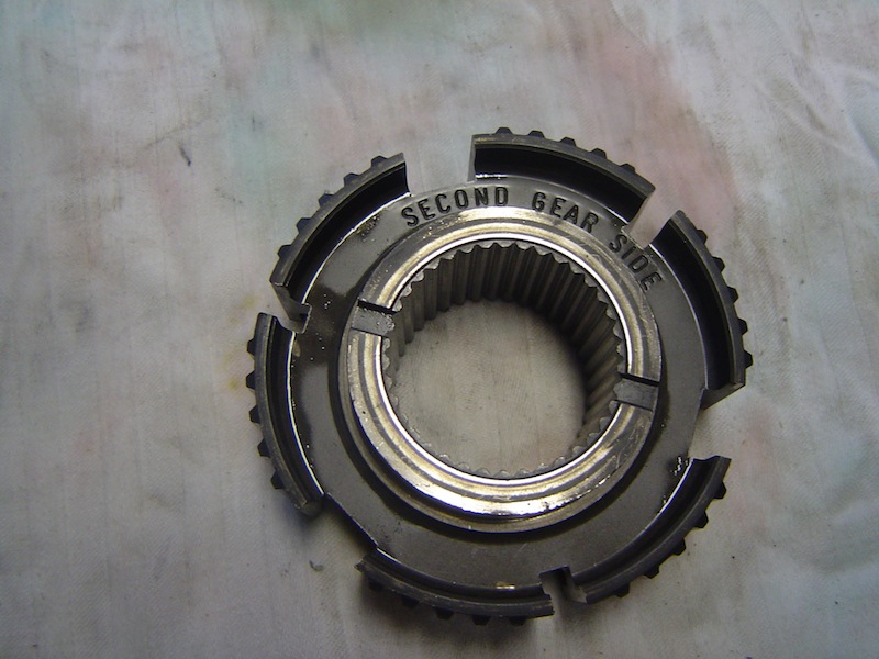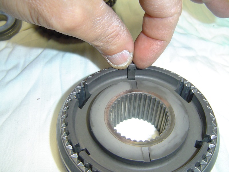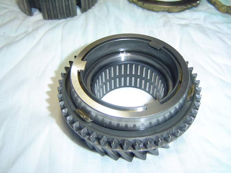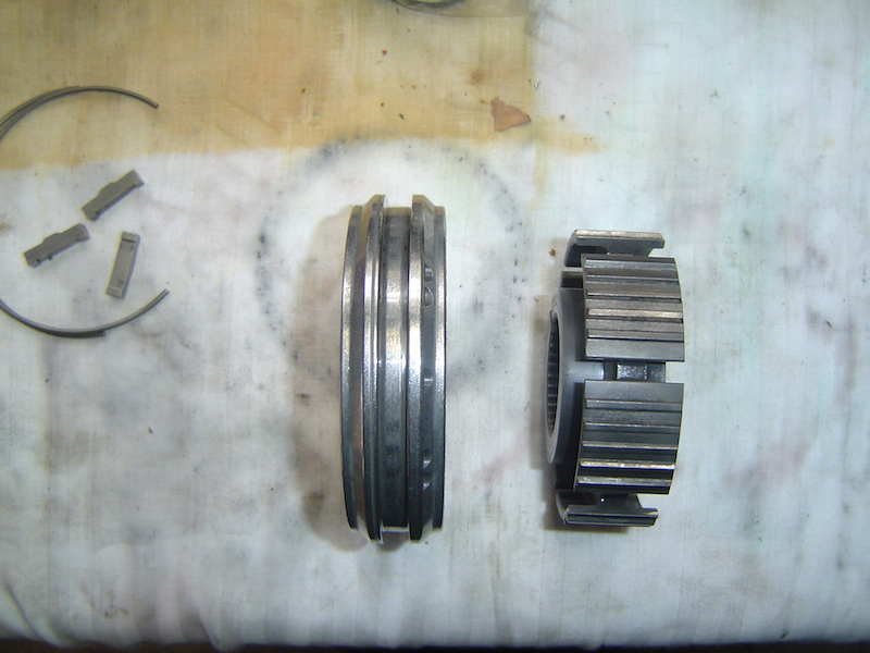 Ensuite on pose l'ensemble sur les bagues de synchro en s'assurant de bien faire correspondre les encoches. Ici le montage sans l'anneau de commande.