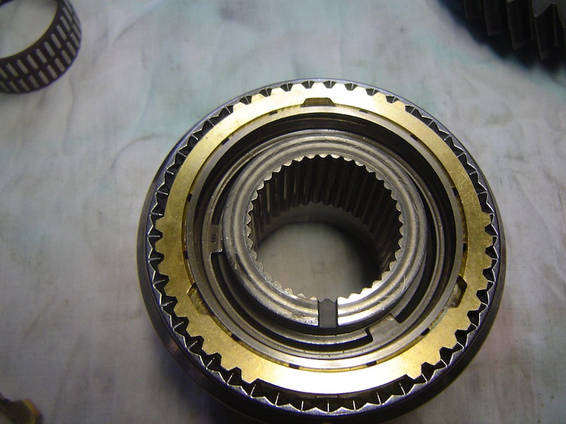 On attrape tout et on sort tout l'ensemble en même temps. L'arbre d'entrée peut venir avec, mais il est préférable de le sortir après car il ne reste collé à l'arbre de sortie que par la bague de synchro de 4° d'ou un risque de chute.