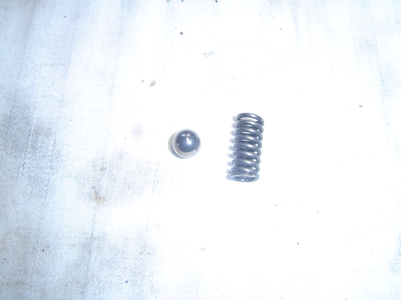 L'ensemble démonté. Attention il y a encore un ressort et une bille de l'autre côté du coulisseau qu'il faudra récupérer lors du démontage de ce dernier. Il est bon d'utiliser un aimant pour sortir le ressort et la bille.