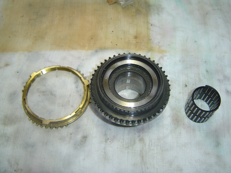 On récupère le roulement, les pignons de 1° et 2° et l'ensemble de synchro de 1°/2°.