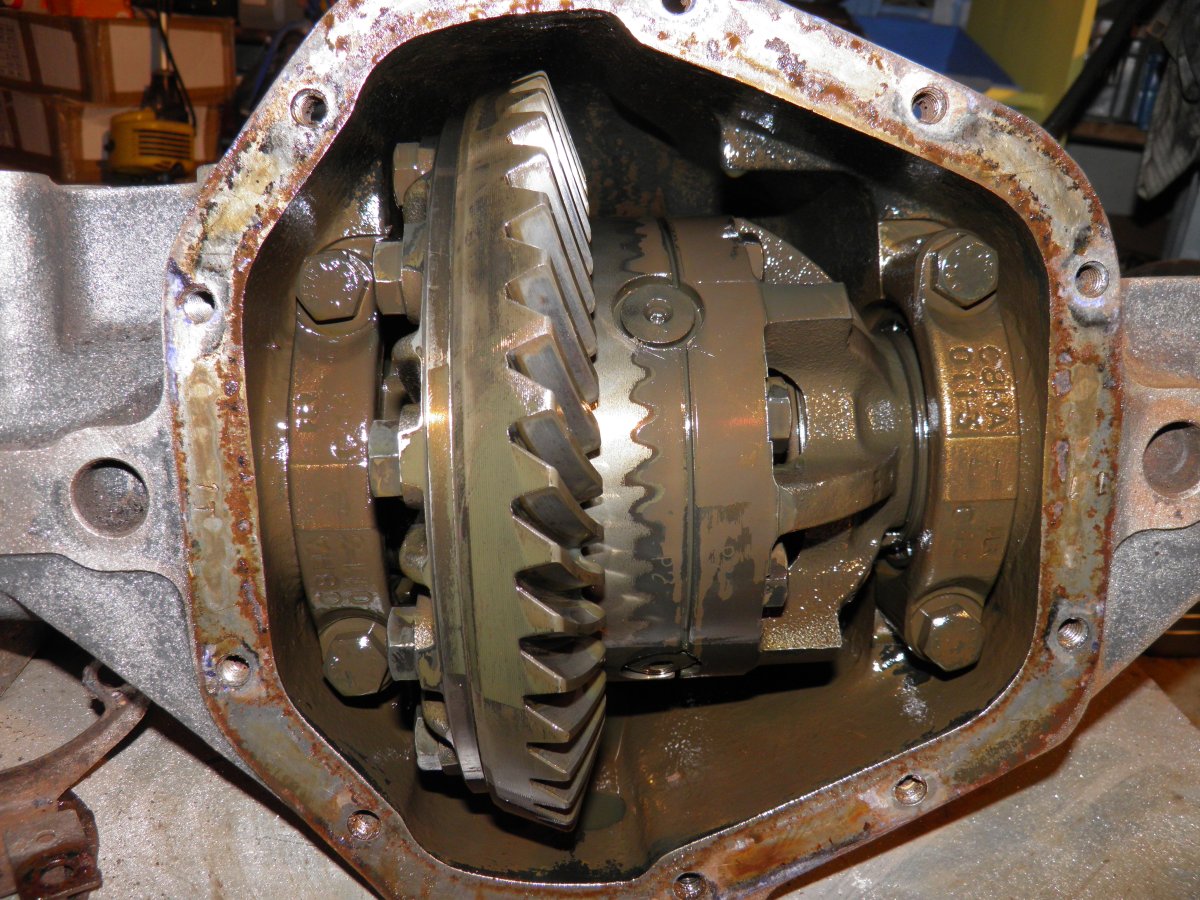 Voici le corps de pont vide. Et le différentiel sur l'établi. Emporté par mon élan, j'ai tombé dans la foulée le pignon .