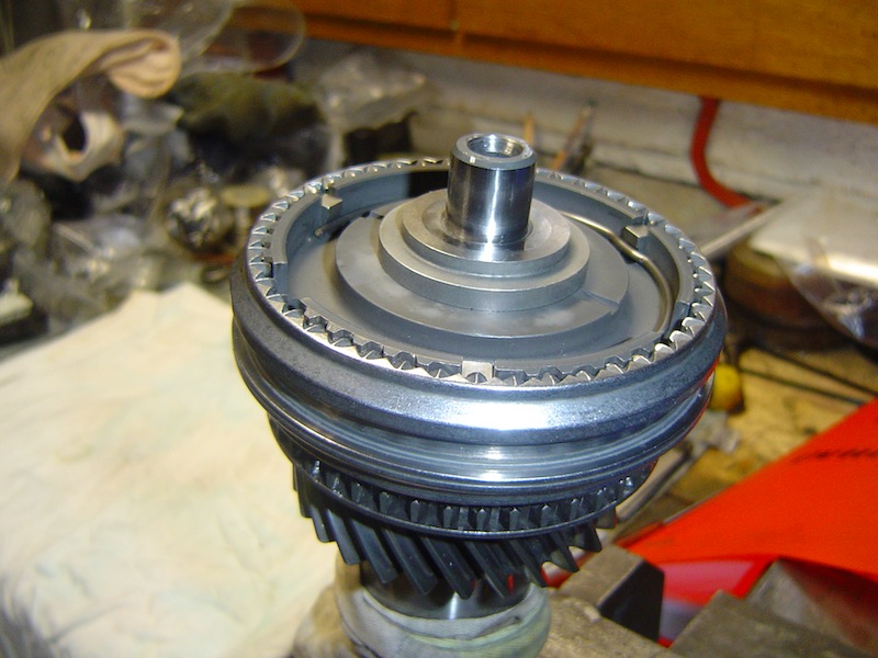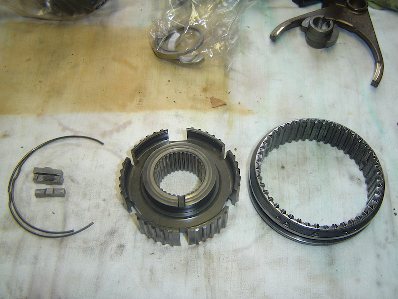 Ensuite on pose l'ensemble sur les bagues de synchro en s'assurant de bien faire correspondre les encoches. Ici le montage sans l'anneau de commande.