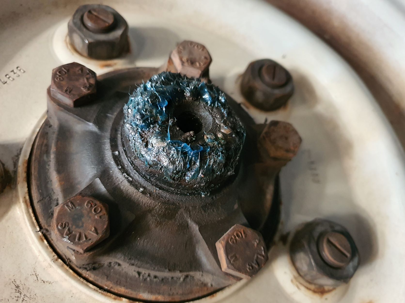 A droite le roulement de roue à été remplacé. Les vis de la main ne sont pas d'origine et ce ne sont pas des 10.9