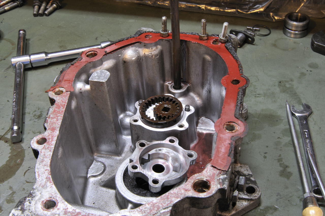 Il reste un roulement à aiguille dans le pignon fou de marche arrière et les commandes de l'axe de selection n'ont pas été complétement déssemblées
