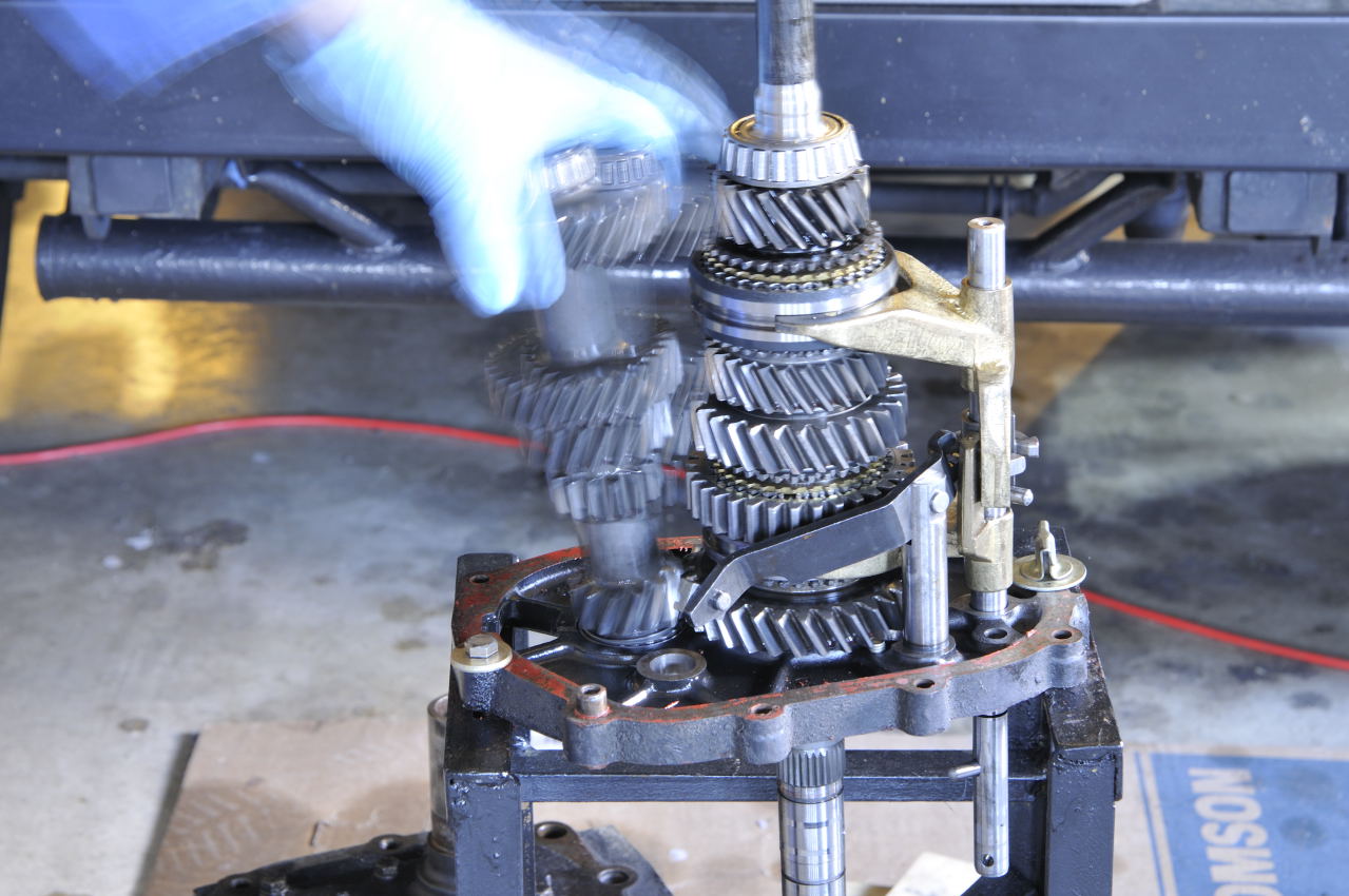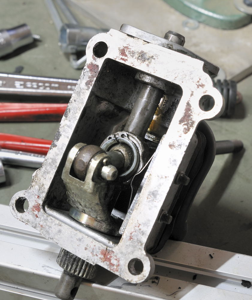 Il reste un roulement à aiguille dans le pignon fou de marche arrière et les commandes de l'axe de selection n'ont pas été complétement déssemblées