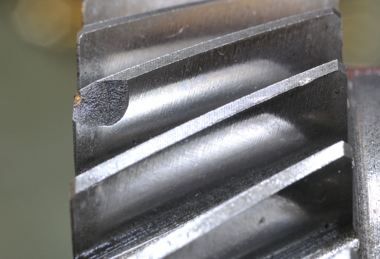 Une petite photo des cannelures en bout d'arbre secondaire : l'usure est pratiquement la même que celle de LØLØ.