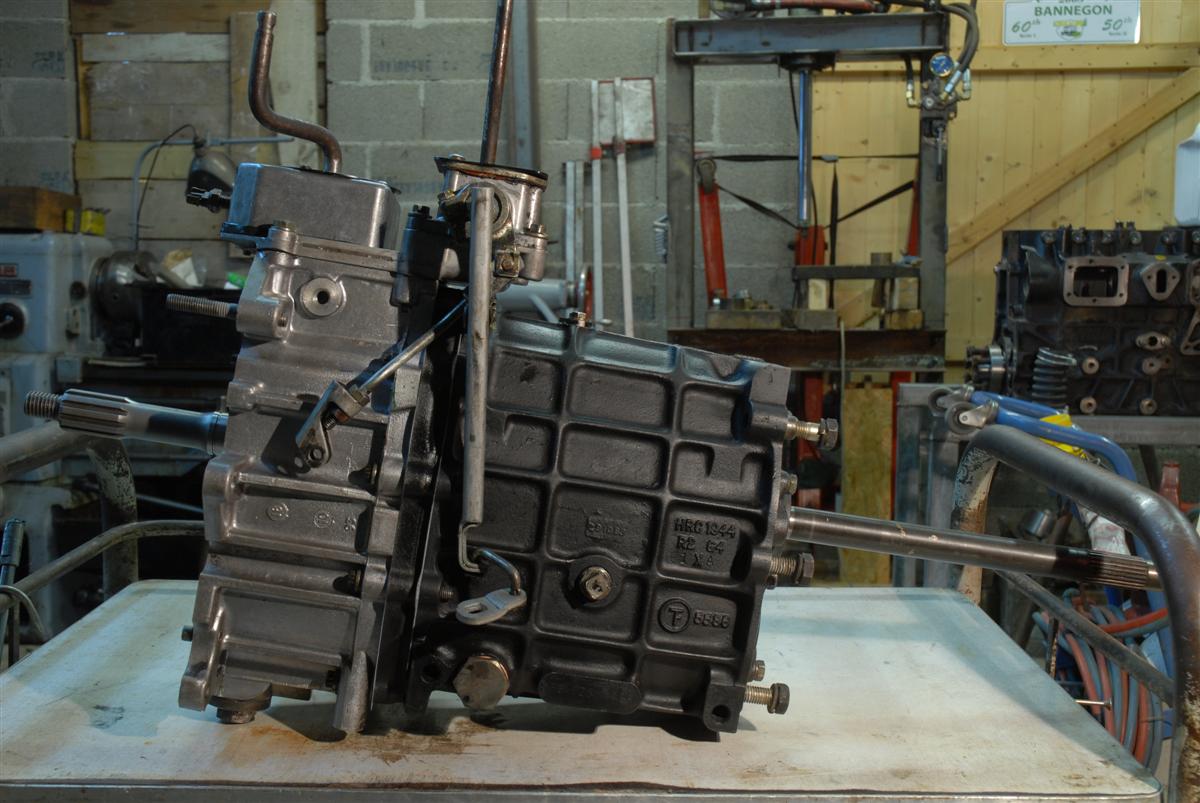 Vue d'ensemble de la LT77S pour disco. On remarque que les principales différences notables concernent le système de commande. Dévisser les deux vis crusiformes pour accéder au ressorts de positionnement du levier en face de la 3 et 4 (rapport de vitesse) et au doigt de positionnement de 1 et 2 (levier en contact sans enfoncement du doigt), doigt que l'on enfonce en passant la marche arrière.