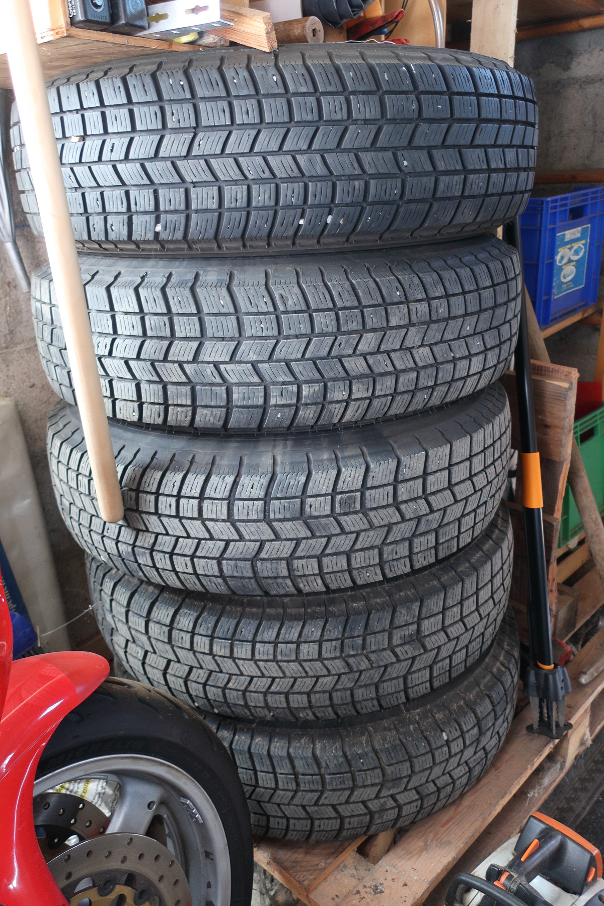 Pneus Michelin Alpins 4x4 en 205/80 R 16 (205 R 16). Les pneus ont 11 ans, stocké empilés, sur jantes de mars à novembre chaque année.