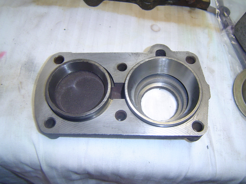 Derrière cette plaque, on trouve la bague extérieure du roulement de l'arbre d'entré et son joint spi, ainsi que la bague extérieure du roulement avant de l'arbre secondaire. Cette dernière possède une rainure extérieure avec un clip.