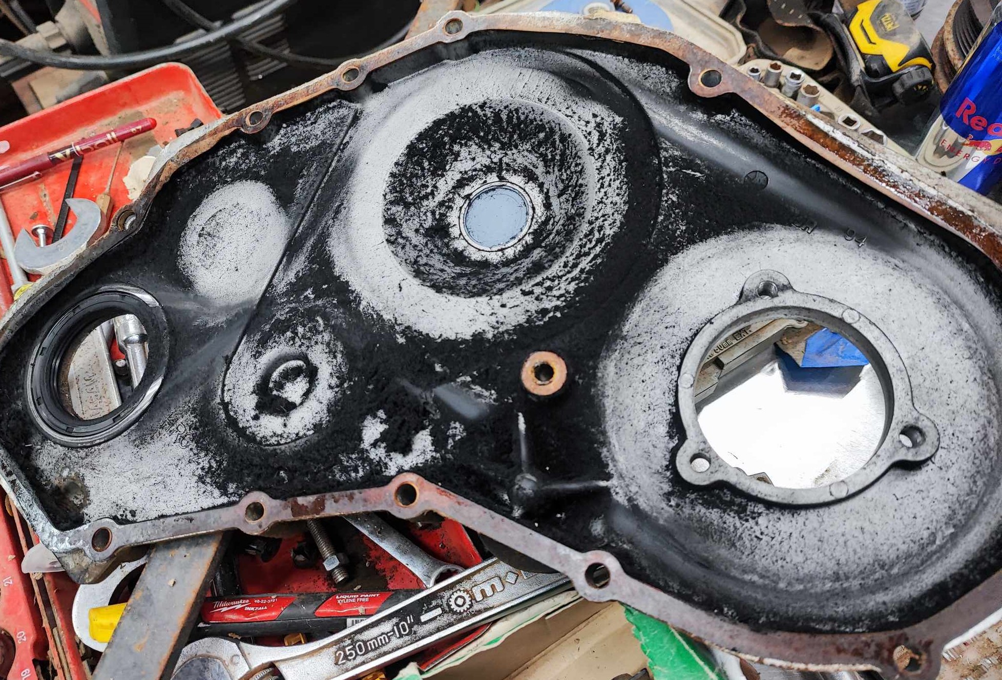 Ce qui est trompeur c'est que la plaque avant de la poulie de la pompe et la plaque avant de la poulie de l'arbre à came sont les mêmes (ERR2216).