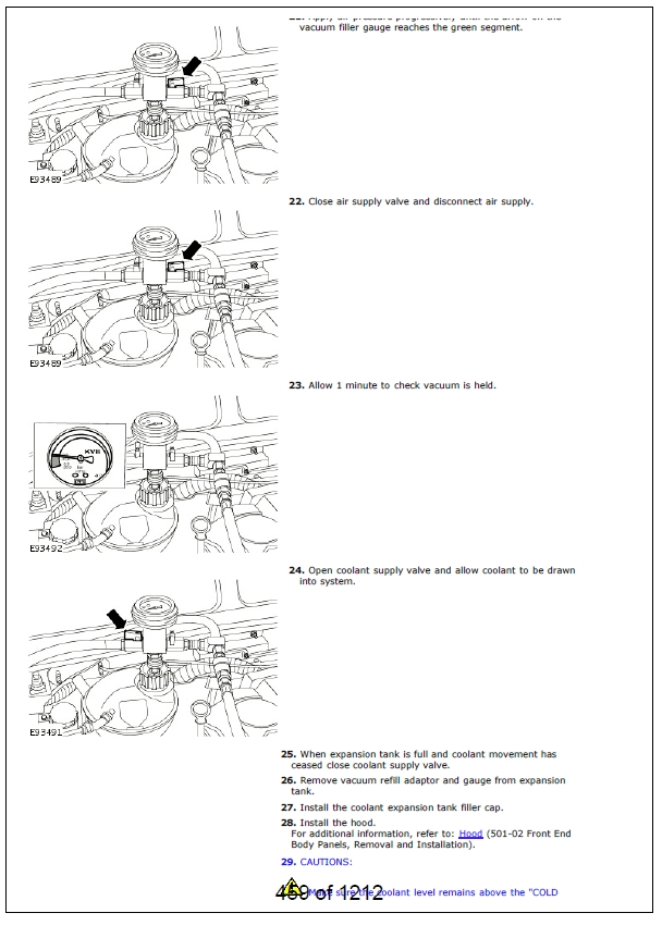 10. Lorsque la purge du liquide de refroidissement est terminé et avant d’installer le bouchon du réservoir d'expansion,