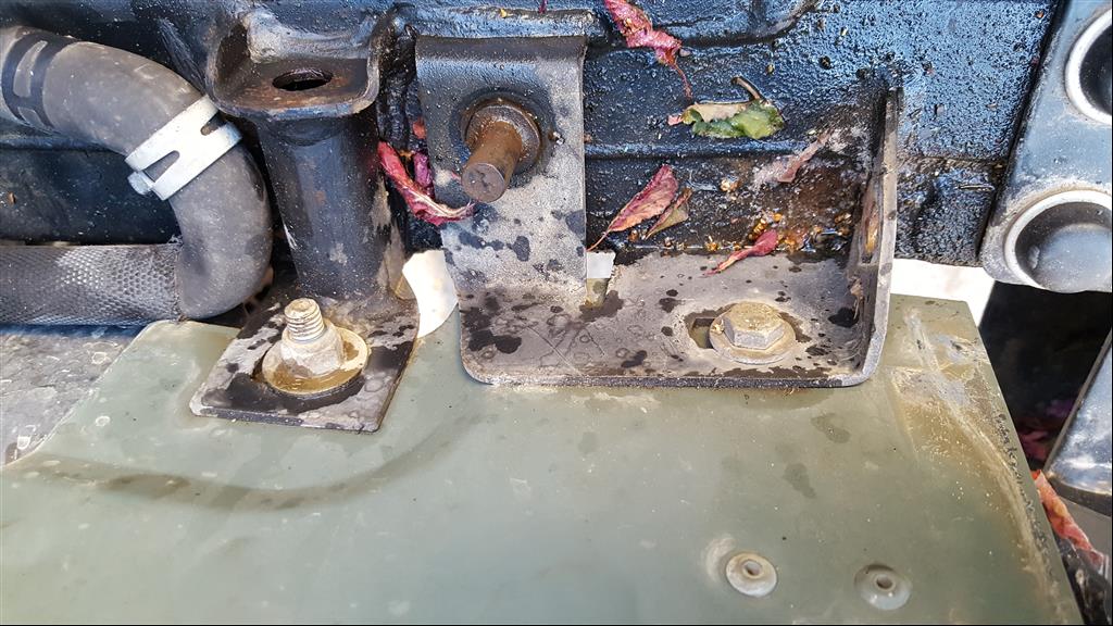 Il y a de solides tétons de chaque coté pour y emboiter le radiateur neuf (voir platine soudée près du repère vert et des feuilles mortes...) :