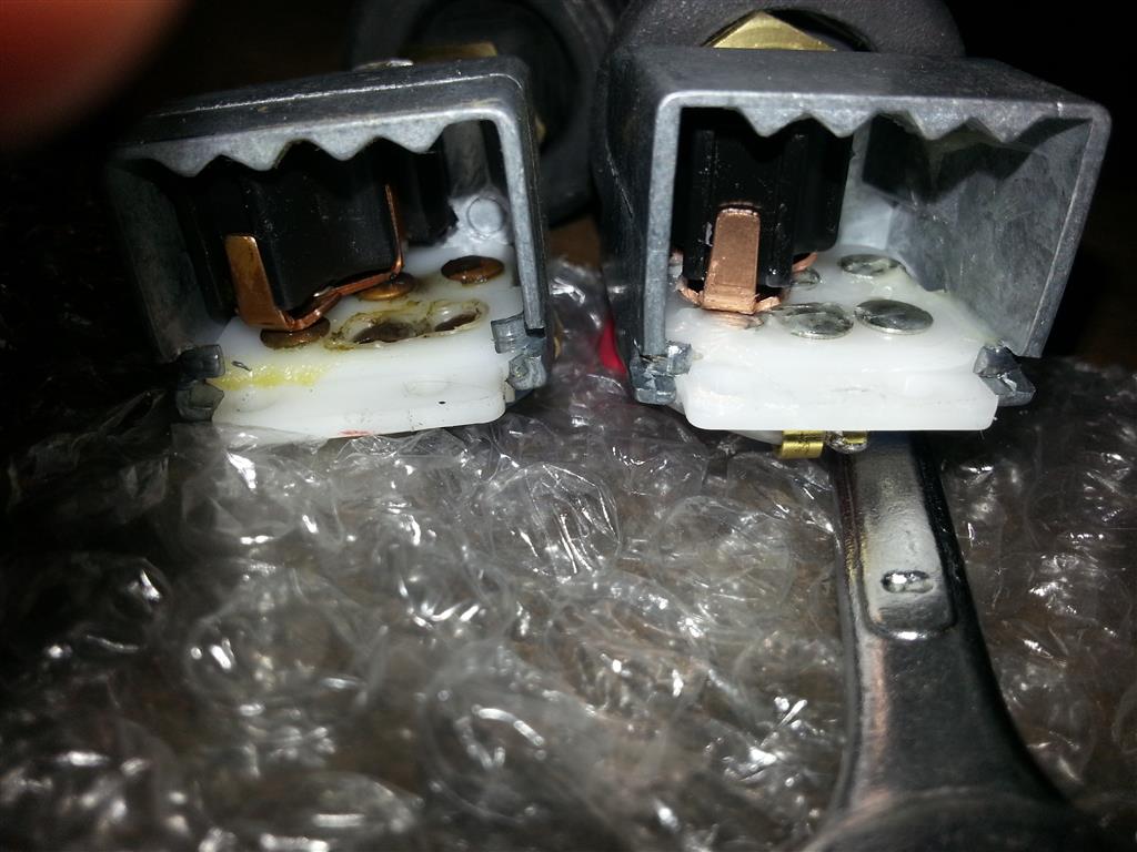 Vérifie les départs vers les code et les phares. Contrôle bien le sertissage des plots male sur les languettes et éventuellement, met un peu de soudure entre le plot male et sa languette cuivre