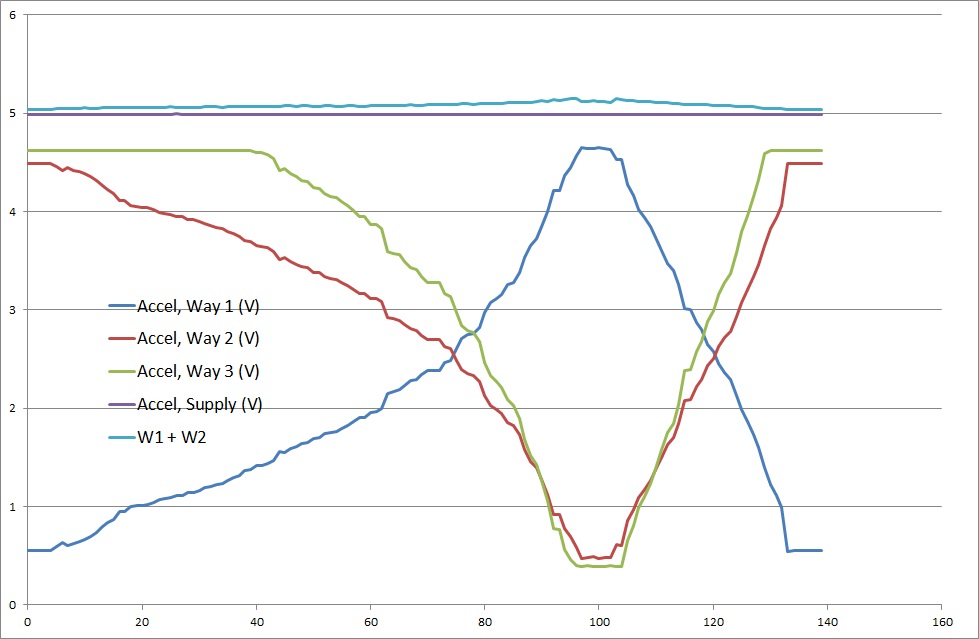 Remarques : La somme des tensions des capteurs 1 et 2 doit toujours être égale à 5 volt, pour le 3 pistes, si ce n'est pas le cas, c'est qu'il y a un défaut. Au nano, il faut lire: (driver demande 1) en volt + (driver demande 2) en volt = driver demande supply.