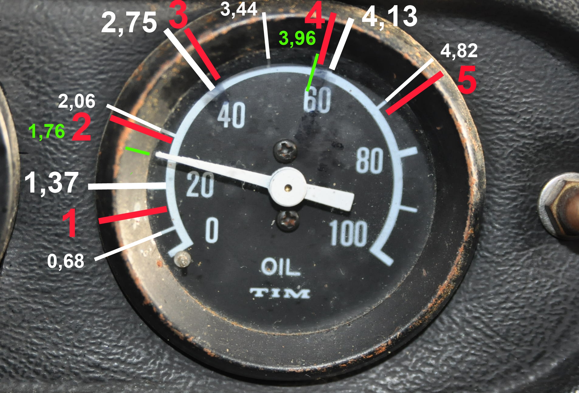 Le constructeur nous donne comme caractèristiques : Pression, avec moteur chaud et régime normal 1,76 - 3,87 kgf/cm