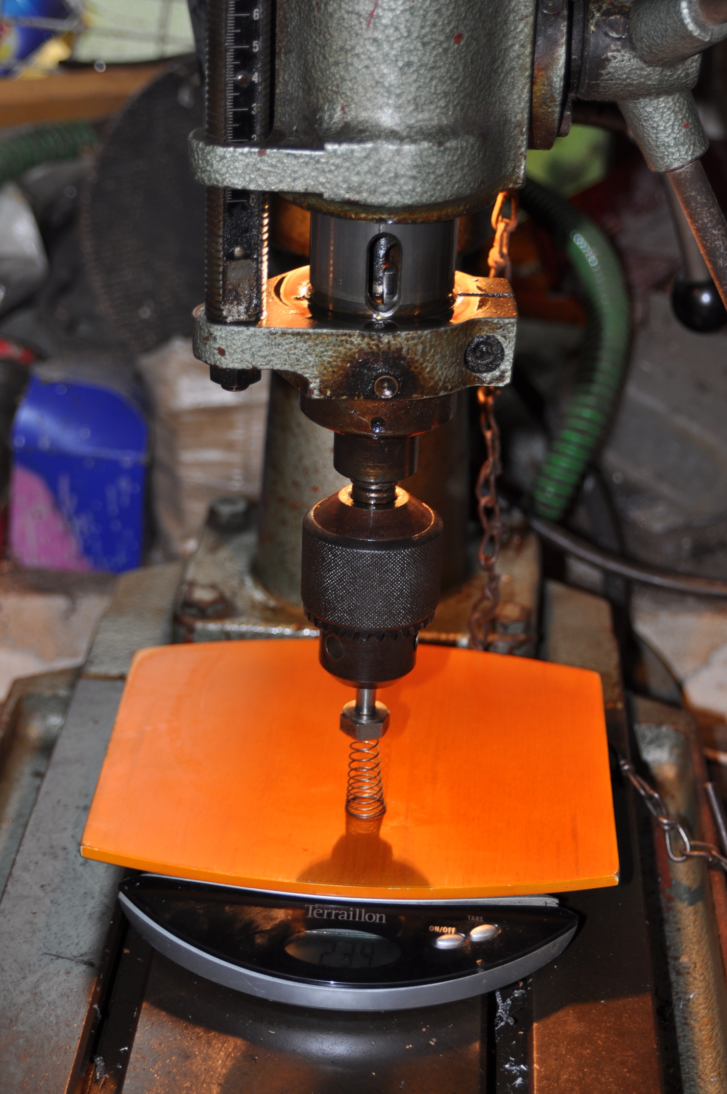 19) Mesures comparatives du ressort du clapet: le vieux mesure à 45.3 mm et le neuf 53,3 mm. Bon je vois mal comment mesurer les 31 mm ou plutôt, comment comprimer ce ressort avec une charge de 7,71 kg, désolé, je ne suis pas équipé