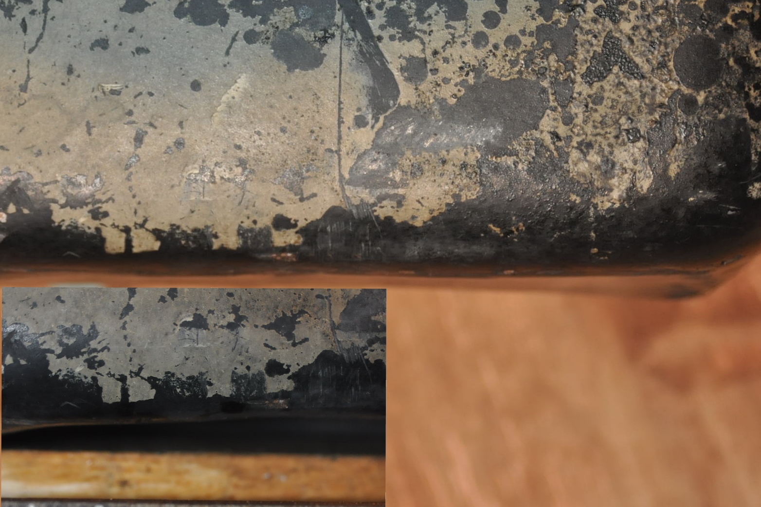 31) Toutes les brides des tourillons cote à cote, avec leurs coussinets usés,cela permet de situer les endroits ou le régule est parti.