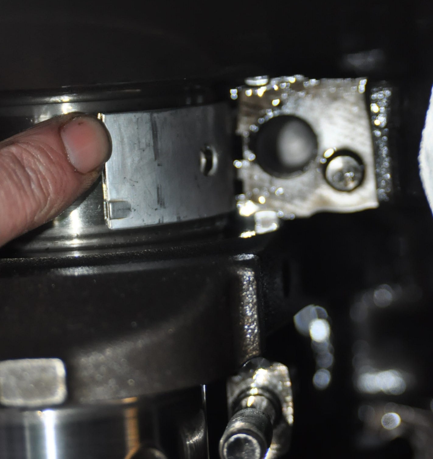 55) Coussinet supérieur du cinquième palier en place lui aussi. C'est souvent une question qui revient sur le tapis, est-il possible de mettre en place les paliers de vilebrequin in situe ?