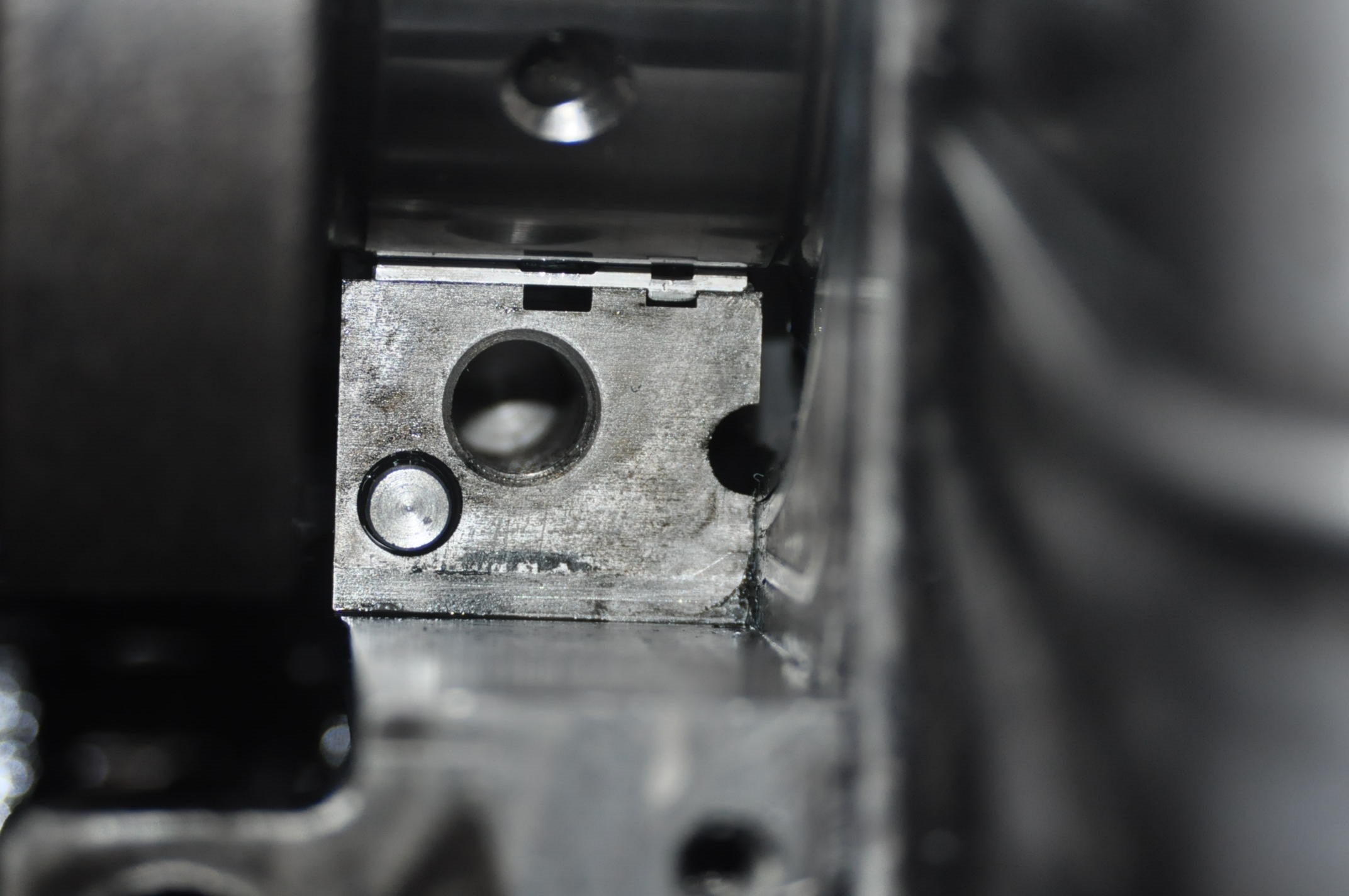 32) On vient à bout des demies coquilles supérieures, en les poussant avec un petit tournevis, elles arrivent à glisser autour du tourillon. Bien sûr, il faut les pousser du coté opposé à l'ergot de blocage en rotation.