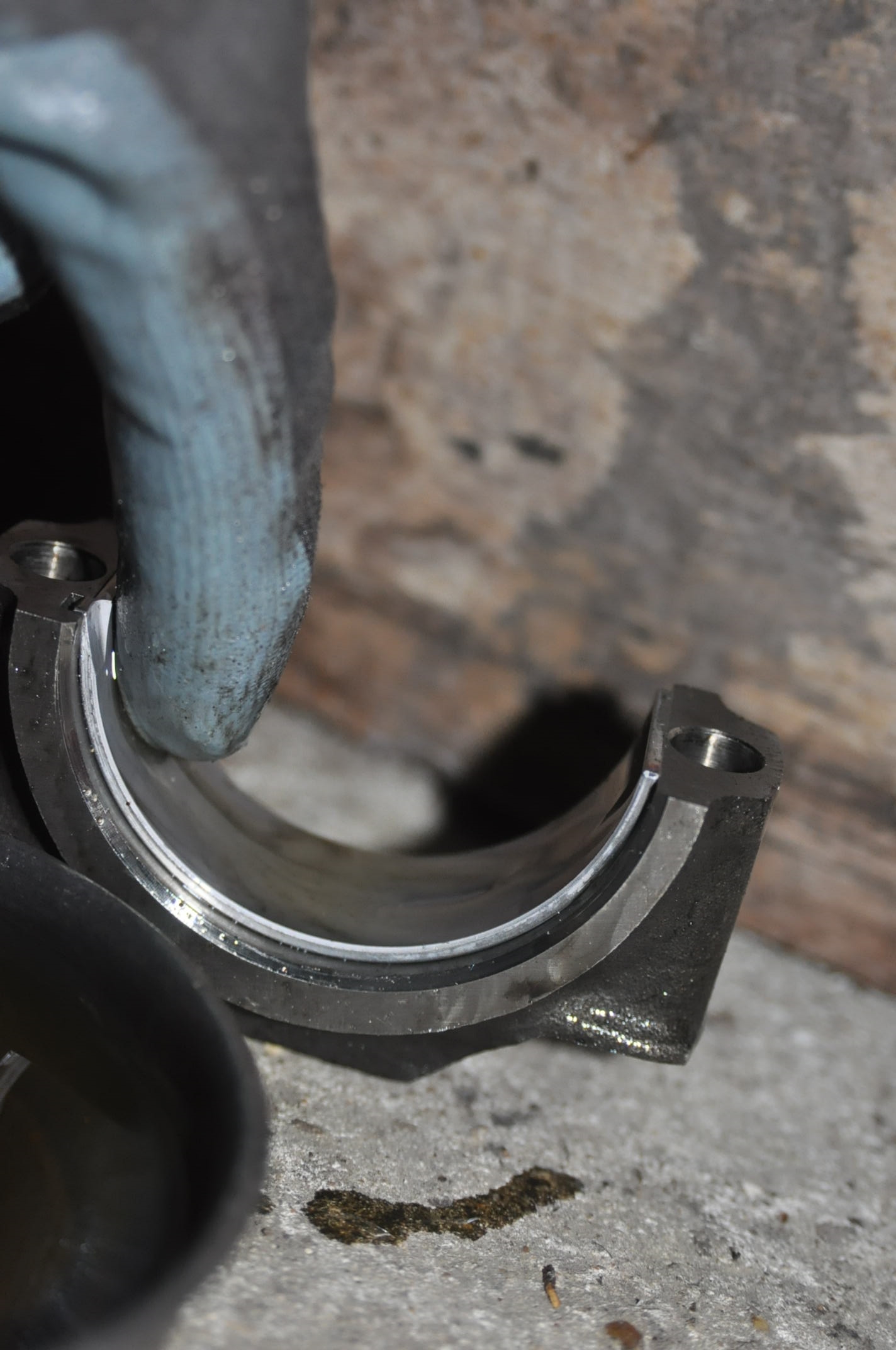 55) Coussinet supérieur du cinquième palier en place lui aussi. C'est souvent une question qui revient sur le tapis, est-il possible de mettre en place les paliers de vilebrequin in situe ?