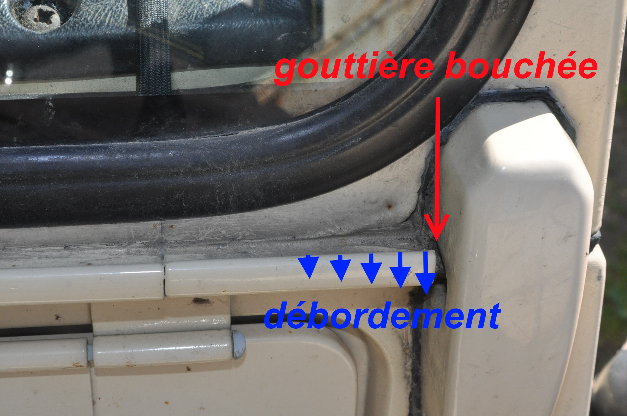 Je me suis aperçu que l’eau venais essentiellement par les volets d’aération et par les fenêtres avant au niveau du coin de vitre après le lèche vitre.