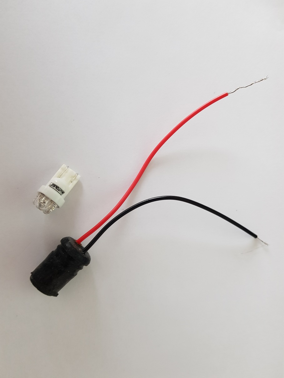 Les LED sont des T10 w5w, achetées chez Norauto. Auparavant les ampoules montées étaient classiques, en w5w, ce qui explique je pense la fonte du plastique vert à l'intérieur des manos. C'était chaud à l'intérieur...