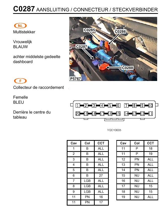 Trouve déjà le fusible 30A et teste à partir de là: c'est là que démarre le fil marron/bleu.