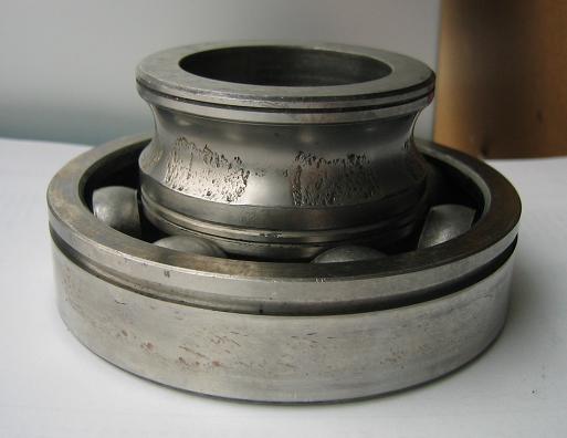 Tu as les écaillages sur la bague intérieure et j'ai mis le même roulement en dessous pour que l'on voit bien la concordance écaillage/bille