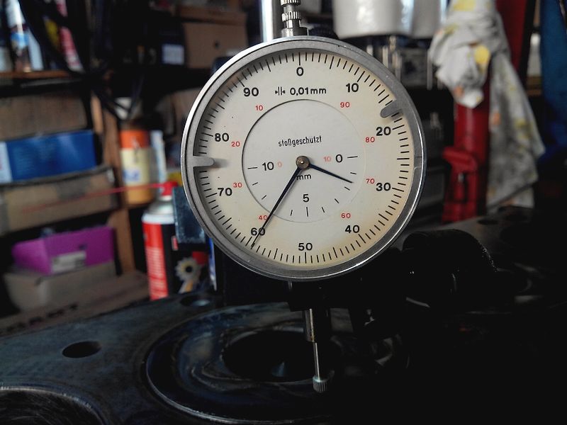 Salut ; Plus simplement : je pose une règle sur le bloc au dessus du piston a mesurer , j'étalonne a zéro le comparateur sur la règle et je fais remonter le piston ; lecture directe sans autre manipulations !!