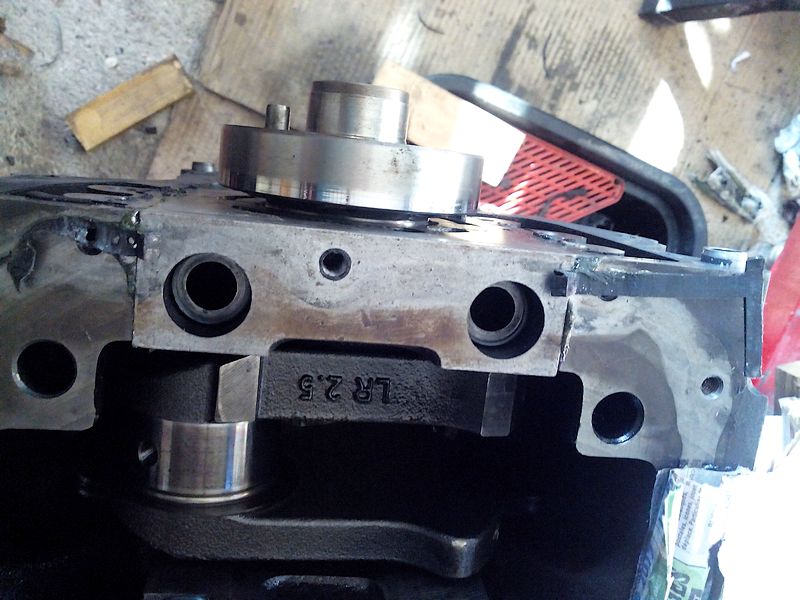 Cette phase de l'opération est la plus délicate: on y va tout doux tout doux en tapotant avec un maillet sur un bout de bois (du pin Provençal c'est mieux...) un petit coup à droite, un petit coup à gauche pour amorcer l'emboitement du demi palier dans le bloc. C'est très précis et il n'y a aucune rainure pour le positionner d'avant en arrière. de plus coller le coussinet avec un peu de graisse pour éviter qu'il ne tombe sur le tourillon du vilo.
