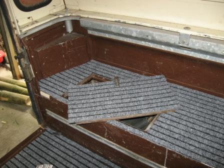 Je me suis aussi lancé dans l'habillage du sol et des banc de la cellule avec de la moquette bien costaude et caoutchoutée en dessous.