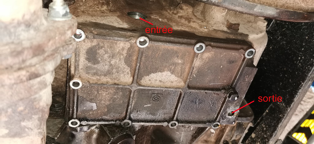 NB: quand j'ai dévissé les 10 boulons l'huile est sortie par le trou de boulon de la plaque le plus bas, alors qu'elle ne sortait pas par le bouchon de vidange et son jeu énorme dû au filetage foiré !?