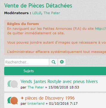 Re: Rubrique "vente pièces" ; où trouver "nouveau sujet" ?