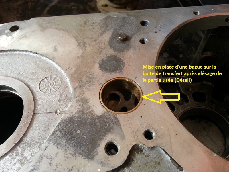 Lors d'un passage au Maroc, une réparation a été faite en 2017 qui a consisté à mettre une bague sur le carter et a usiné l'axe intermédiaire pour mettre un joint torique plus épais.