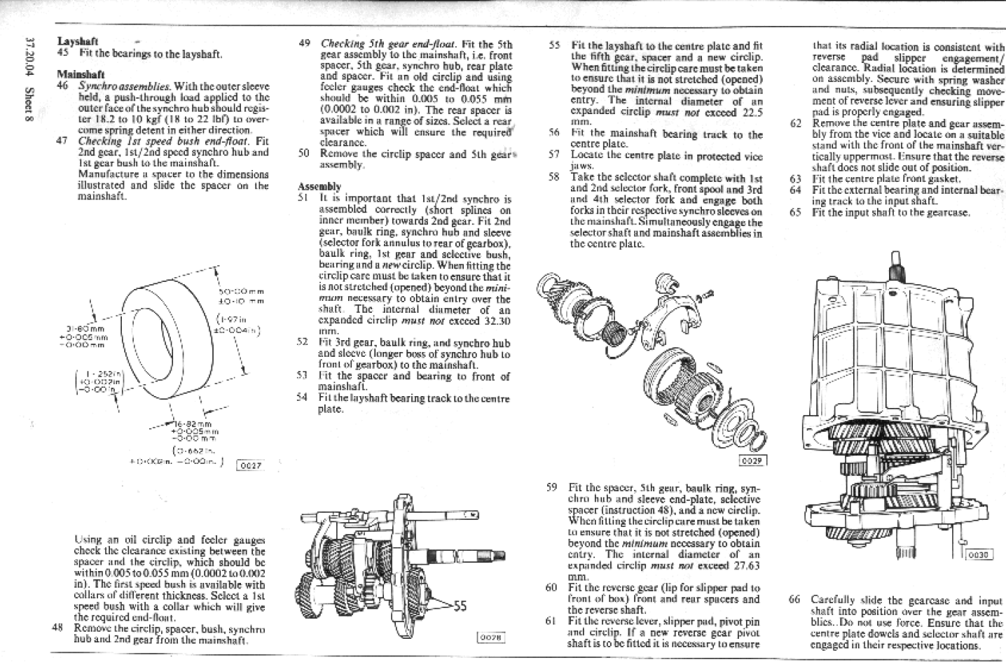 Par contre je suis d'accord avec vous pour le jeu laisser entre roulement et la bague (16,52mm) pour le pignon de 5ieme doit bien être compris entre 0,005 et 0,055mm.